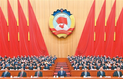 三月的北京,春启华章。人民大会堂大礼堂灯光璀璨,气氛隆重热烈。中国人民政治协商会议会徽悬挂在主席台正中,十面鲜艳的红旗分列两侧。